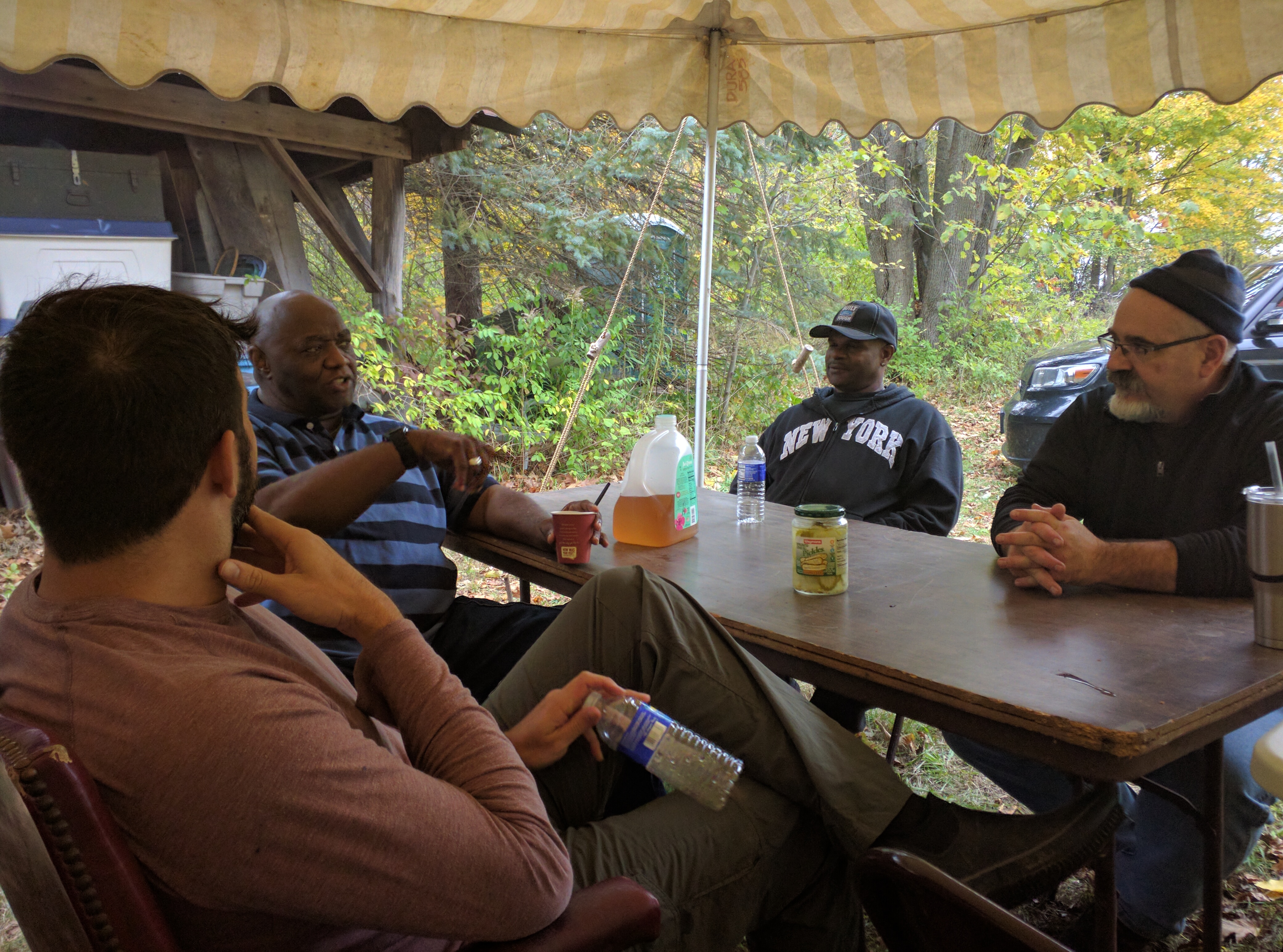 On Saturday, October 29th the Orion Osenodus circle in Sodus hosted a Pig Roast at Jim Coloumbe’s house back at the pavilion. When asked why their circle was hosting this Dave “Bulldog” Palumbo said “It’s all about connection. Everybody is looking for a tribe or community. This was about getting together to spend time with each other enjoying each others company. That’s why I’ve been with my wife 30 years, we have fun together.”